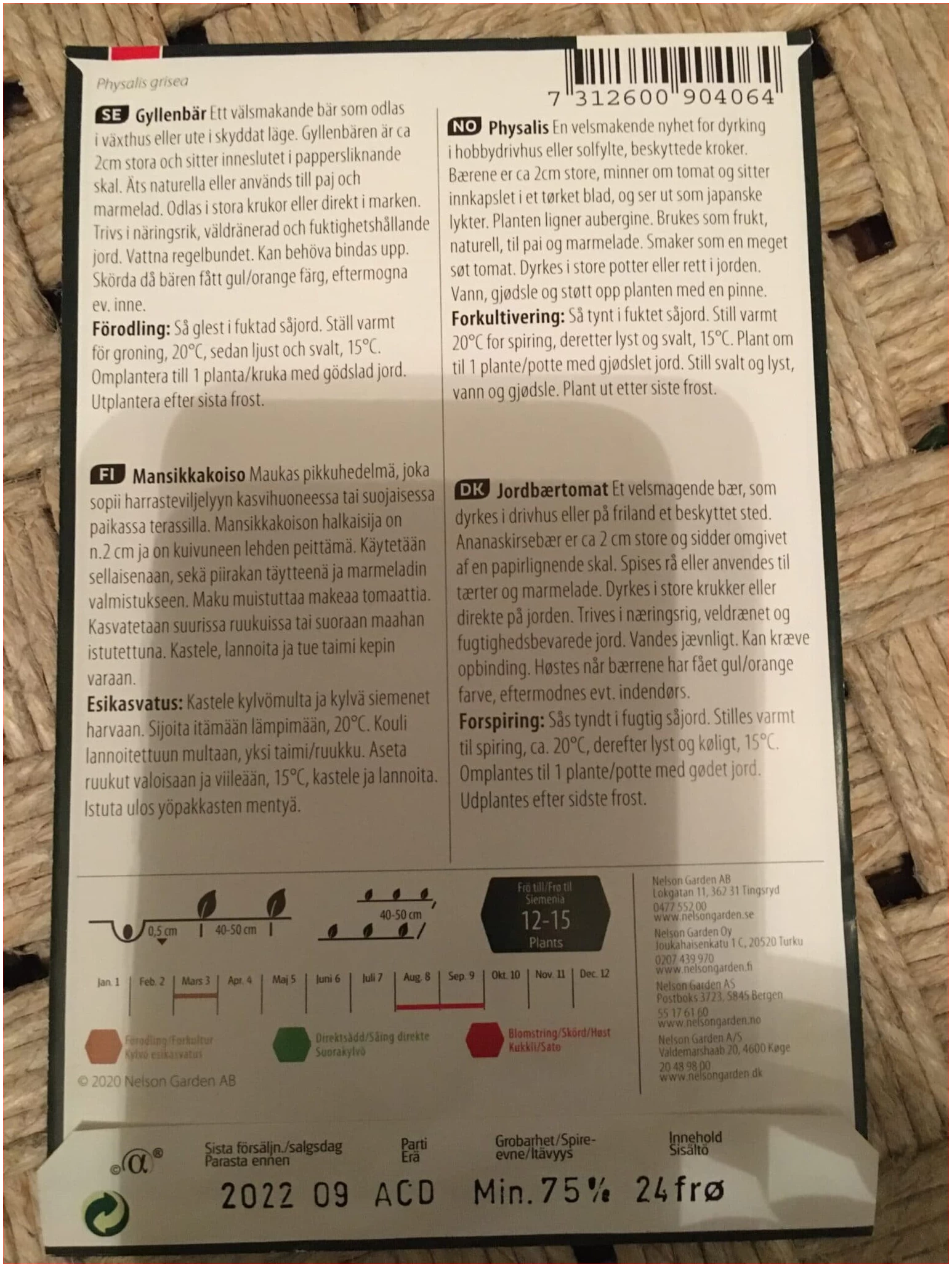 En velsmakende nyhet for dyrking i hobbydrivhus eller solfylte, beskyttede kroker. Bærene er ca 2 cm store, minner om tomat og sitter innkapslet i et tørket blad, og ser ut som japanske lykter. Planten ligner aubergine. Brukes som frukt, naturell, til pai og marmelade. Smaker som en meget søt tomat. Dyrkes i store potter eller rett i jorden. Vann, gjødsle og støtt opp planten med en pinne.