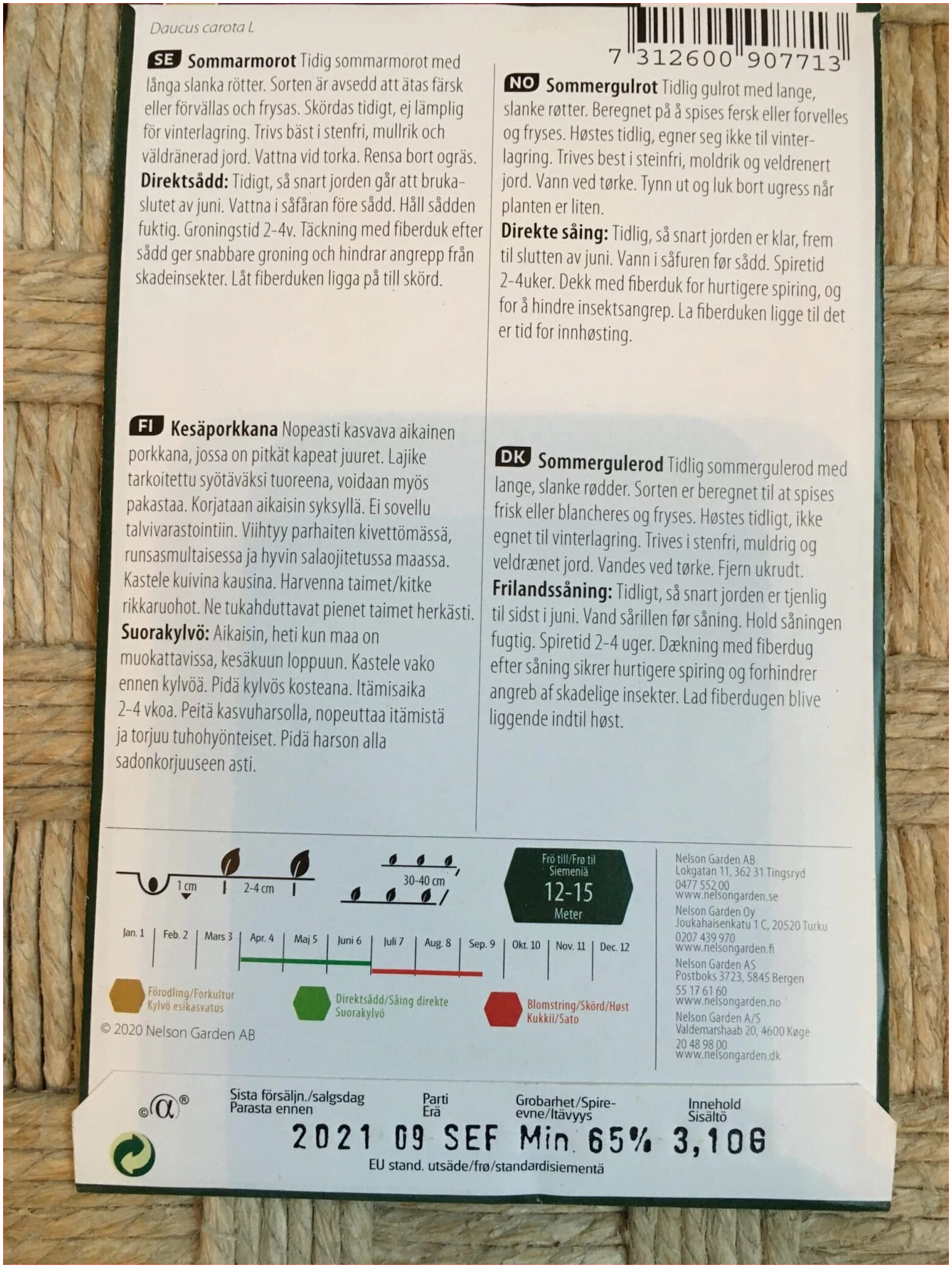 Latinsk navn: Daucus carota L Planteavstand, cm: 2-4 Radavstand, cm: 30-40Beliggenhet: Sol Prisgruppe: B Antall frø: 3100 Holder til: 12-15 M