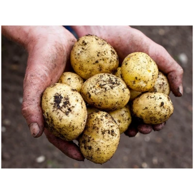 MANDEL: Mandel er en sein, melen spesialpotet kjent for sin utmerkede smak og meget gode lagringsegenskaper. Denne populære poteten har en avlang form med lysebrunt til gult skall og en karakteristisk liten bøy på midten. Noe sårbar for tørråte. Trives godt over 400 moh. eller i lavlandet i Nord-Norge, hvor soppen ikke utvikler seg like lett.